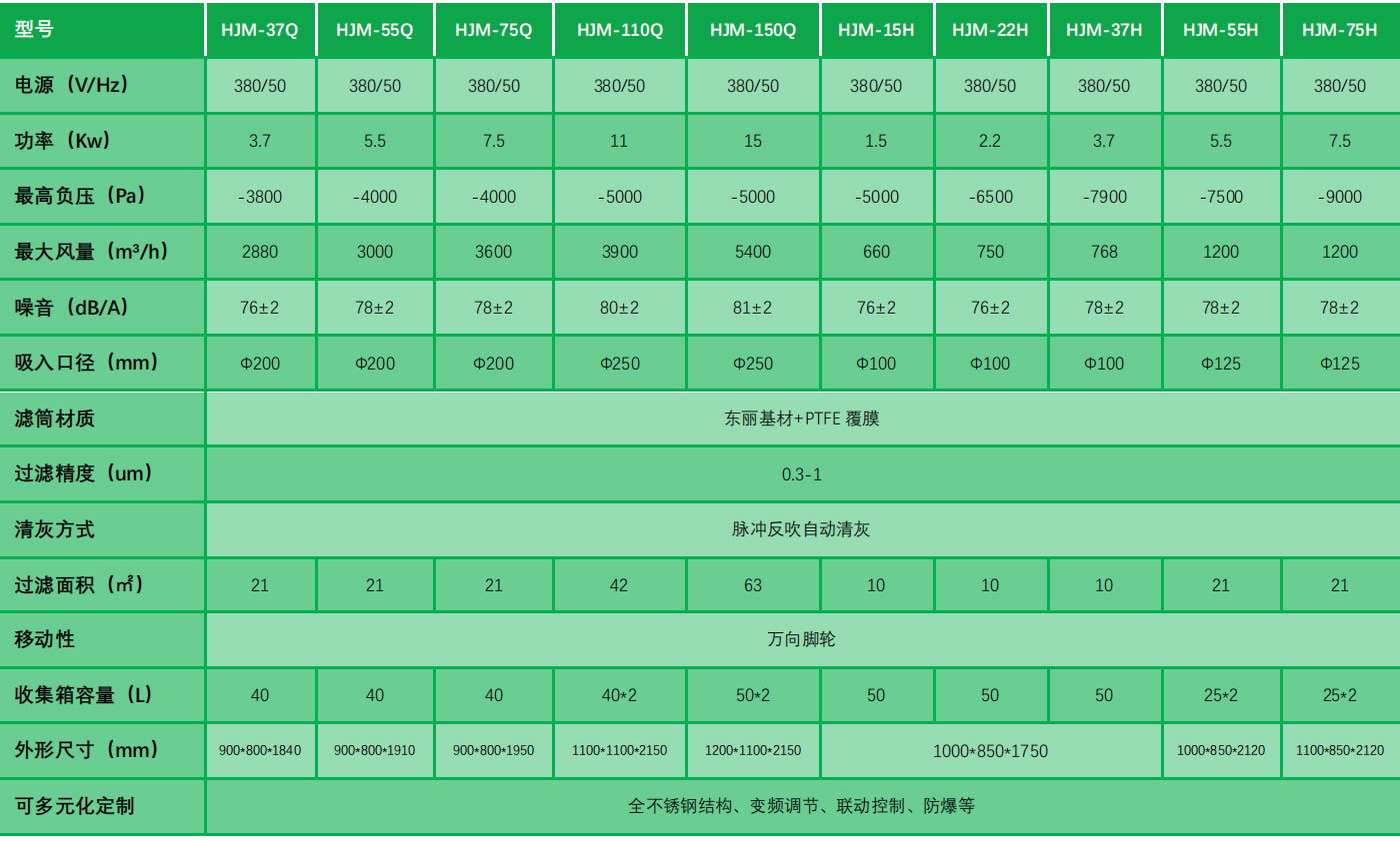 HJM系列產品以柜式結構、大風量、為特點,采用一體化柜式結構,外形美觀,專為漂浮、懸浮粉塵收集與治理,適用于攪拌作業、切削作業、袋裝作業、研磨作業、噴砂作業、有機玻璃加工、震動篩網、空氣輸送、包裝作業等的粉塵收集而設計,適合風量大、負壓高的工況。